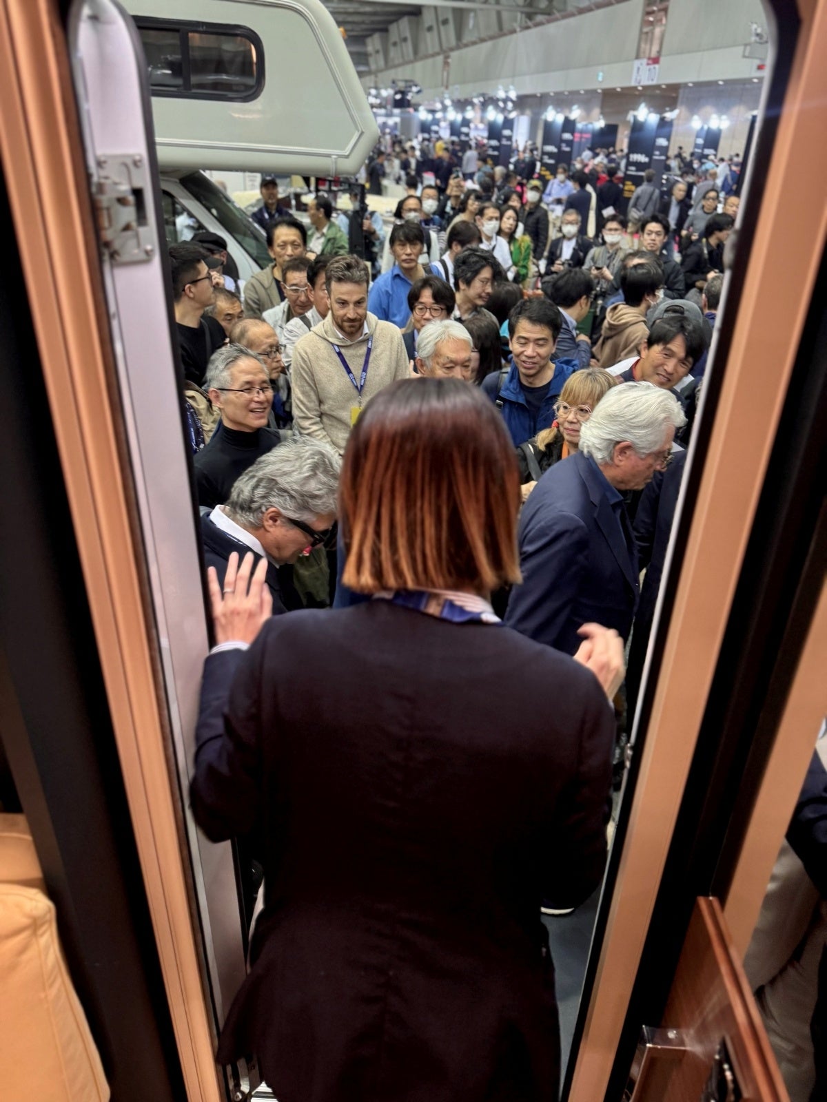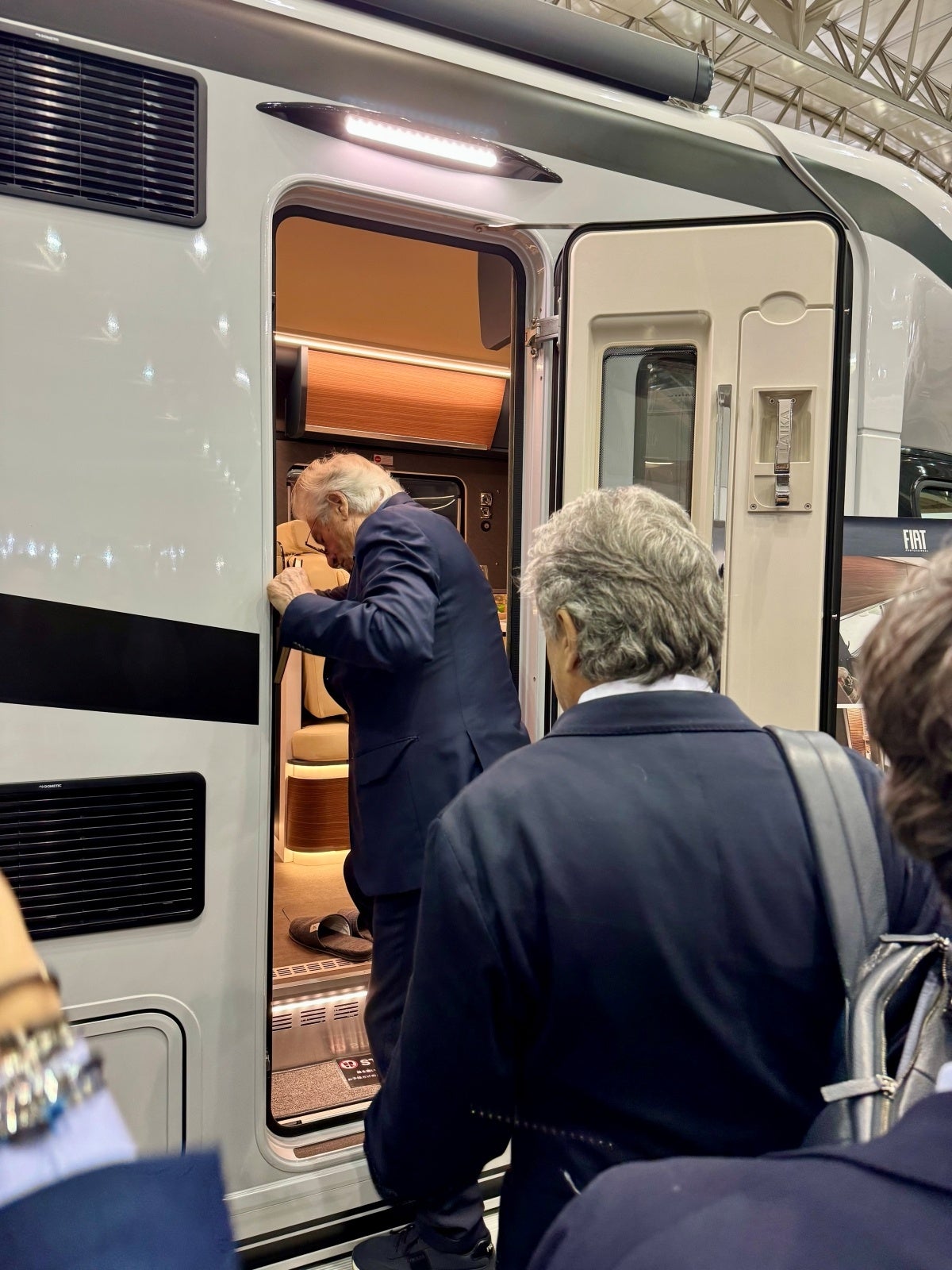 そして、トイファクトリーブースには、来日されていたデザイナー「ジョルジェット・ジウジアーロ氏」にもご来場いただき、自身がデザインを手掛けた最高峰のラグジュアリーモーターホームである、LAIKA/KREOS L 5009を車内を見学されました。