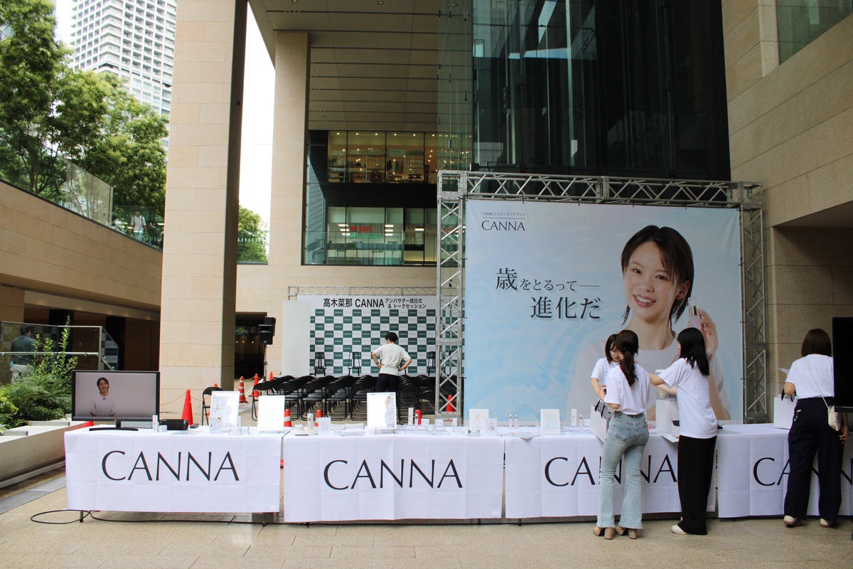 また、会場では公式Instagramフォローで参加できる外れなしのカプセルトイも実施され、こちらも大きな盛り上がりを見せました。景品には、髙木菜那さん&糸井嘉男さんの直筆サイン入りCANNAオリジナルポーチや、CANNAの現品スキンケアアイテムなど豪華なラインナップを用意。CANNAの魅力を楽しみながら体験する貴重なひとときとなりました。