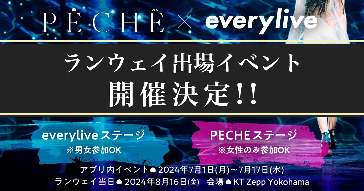 ライブ配信アプリ「everylive」とファッション雑誌「PECHE」のタイアップ第二弾が決定!有名モデルやインフルエンサーが参加するランウェイイベントにエブリライブのライバーがモデル出演!