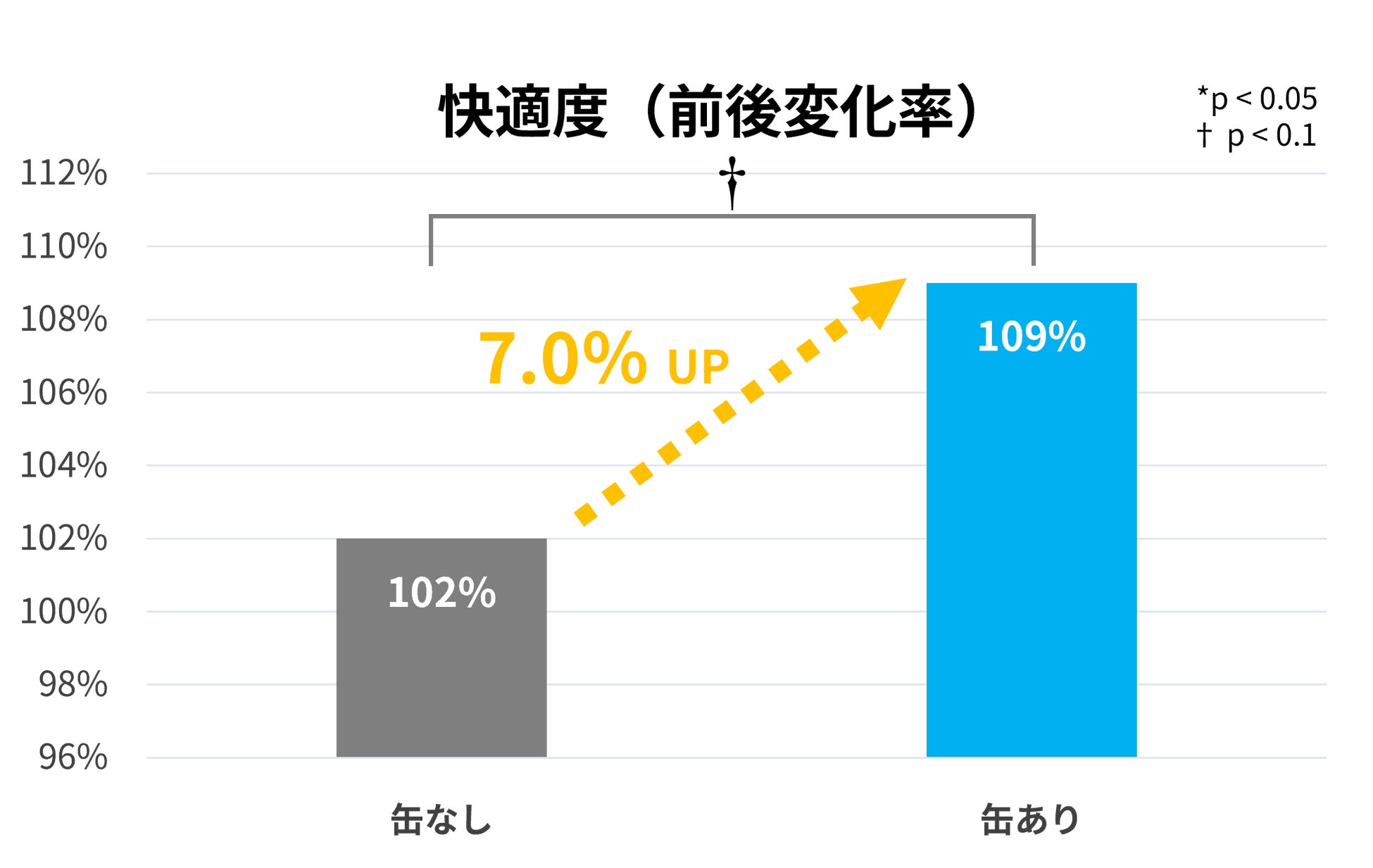 初対面の人とコミュニケーションをする際に、 「温かいスチール缶を持つ」ことがどのような影響を与えるかを検証したところ、コミュニケーション前後の安静時の快適度が7.0%上昇していることが明らかになりました。