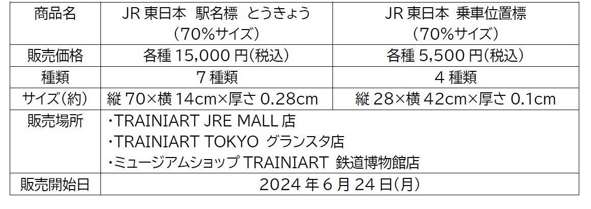 〇JR東日本のサインマニュアルに基づいて制作された、駅名標のレプリカグッズ(縮小版)と、JR東日本で実際の鉄道標識として使用されている素材を使用した、E3系乗車位置標・E8系乗車位置標のレプリカグッズ縮小版を、直営店舗