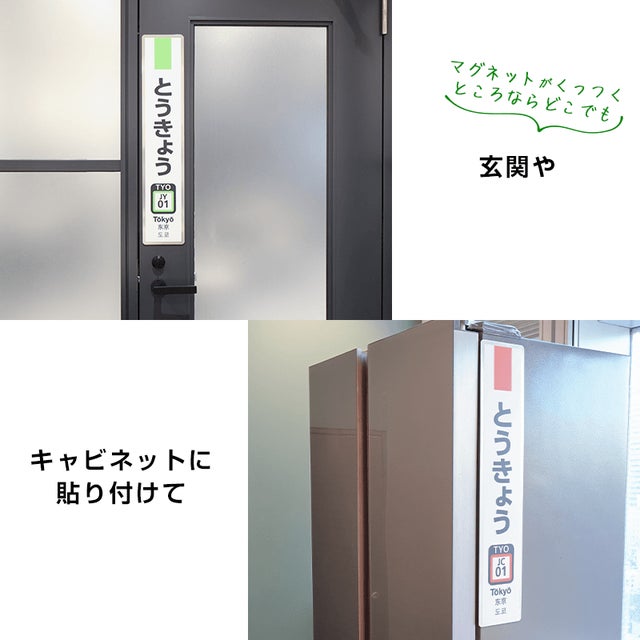 JR東京駅に敷設されている駅名標 7 種類のレプリカグッズです。 JR東日本のサインマニュアルに基づいてデザインしており、実物の駅名標で使用されているものと近い基板を使用しています。駅ナンバリングや各路線のカラーも忠実に再現しています。裏側はマグネットのため、玄関やキャビネットに貼ると存在感抜群です。