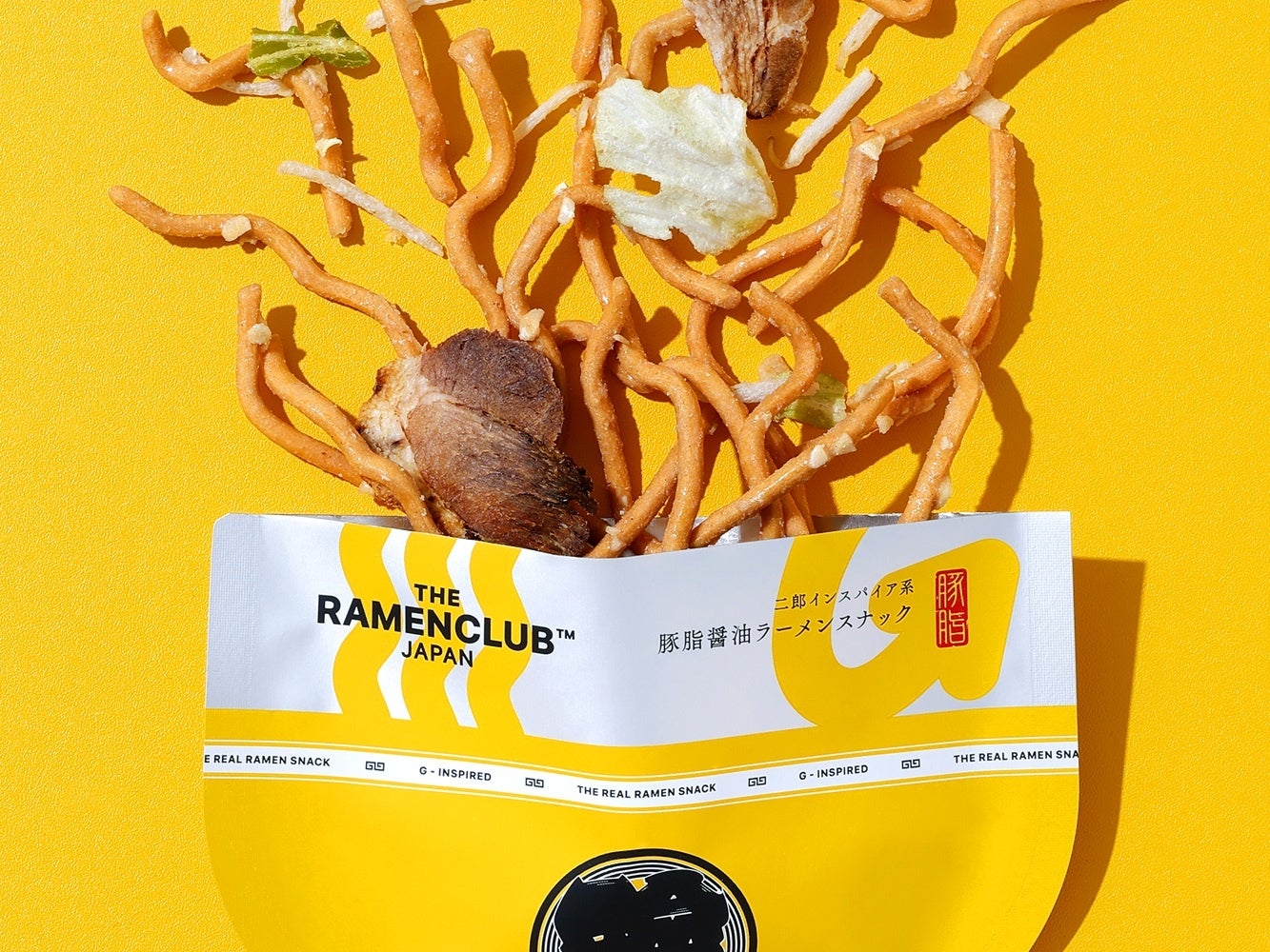 「RAMEN CLUB」は、数種類の小麦を使ったオリジナルの自家製麺を三度揚げし、麺にスープをまとわせた進化系ラーメンスナックです。
