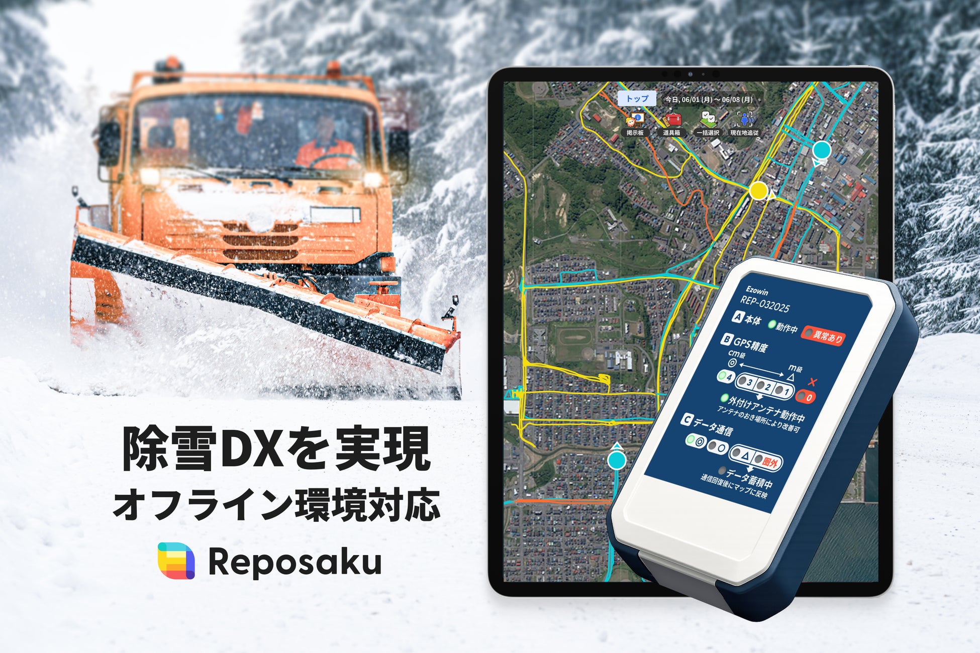 エゾウィン株式会社(本社:北海道標津町、代表取締役:大野 宏、以下「当社」)はこのたび、当社が開発・提供する動態管理DXプラットフォーム「レポサク」を応用し、この度の冬期に除雪業務の効率化と管理体制の強化に関する実証事業を実施し、有効な成果が得られたことをお知らせします。