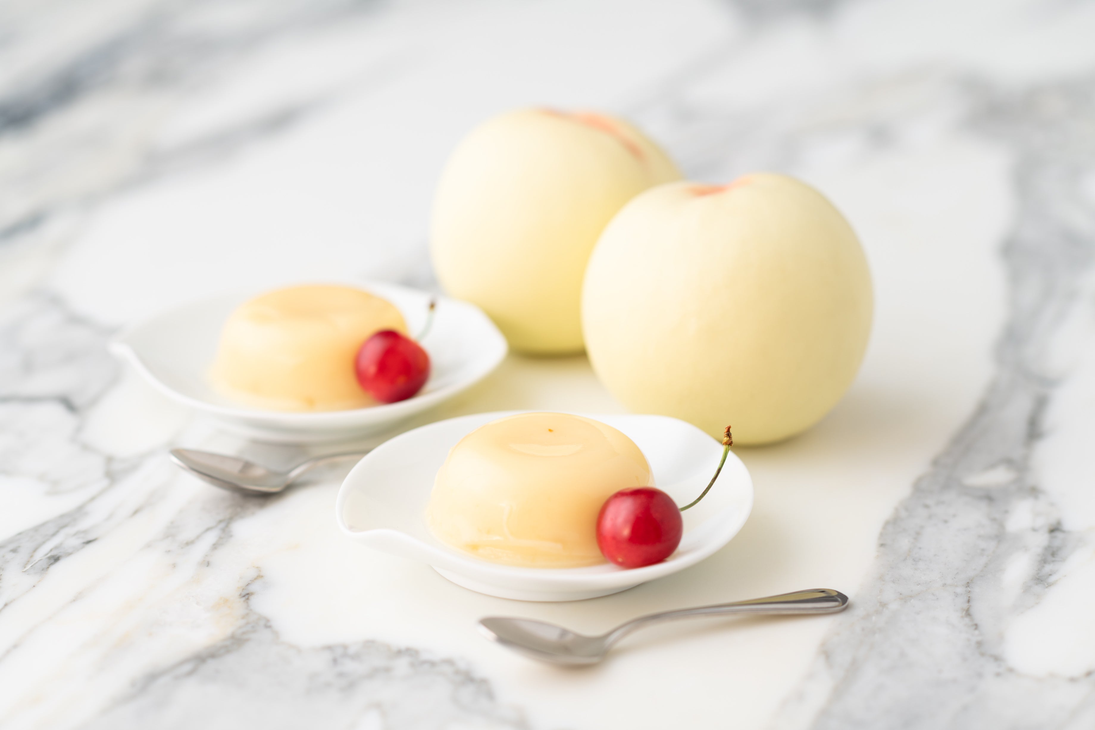 旬の国産赤いちごとさくらんぼ各1種&岡山白桃プリン4個とフルーツティー