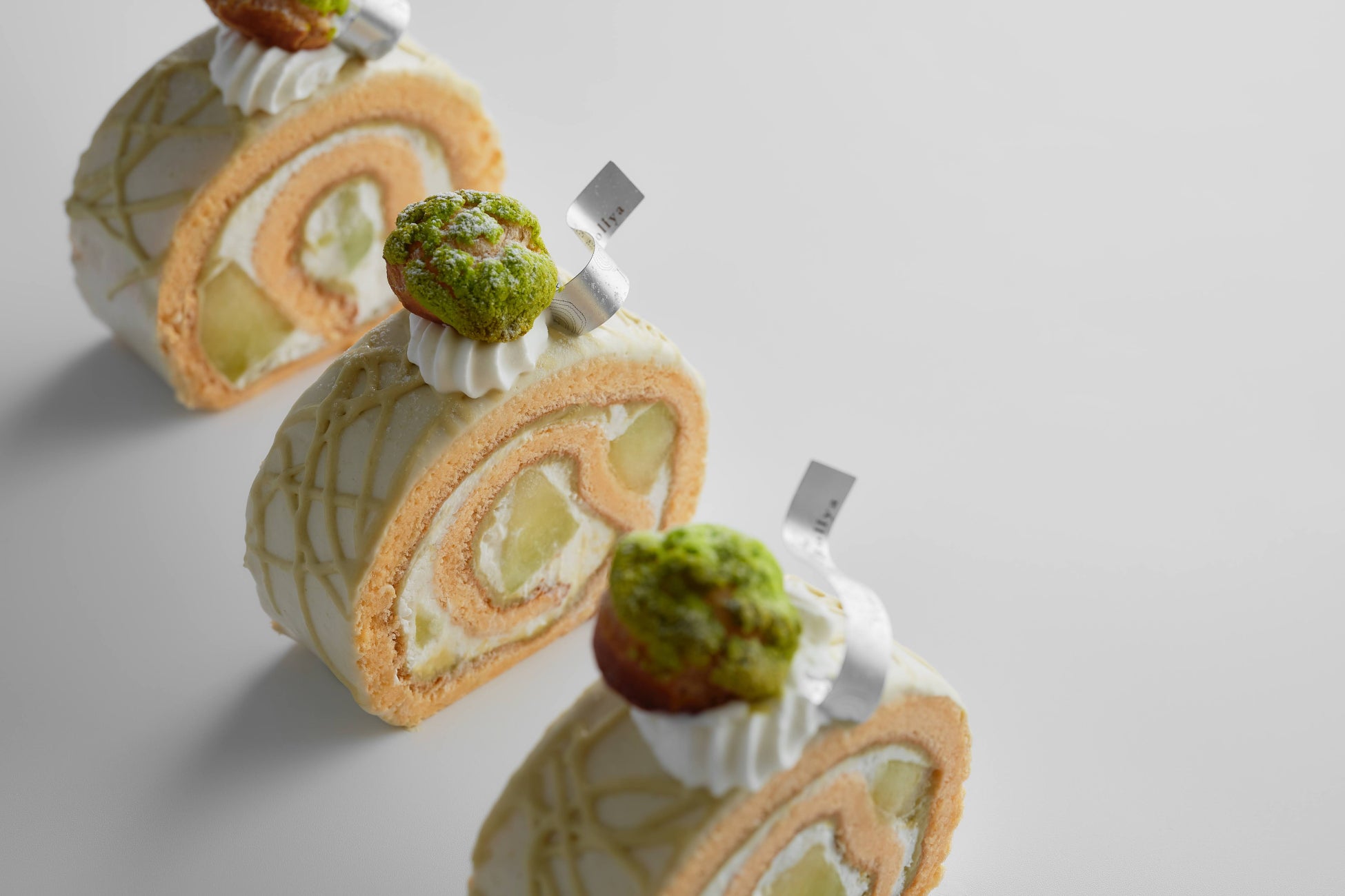 那須御養卵をふんだんに使った米粉のシフォン生地でメロンの果汁を加えたカスタードクリーム、
