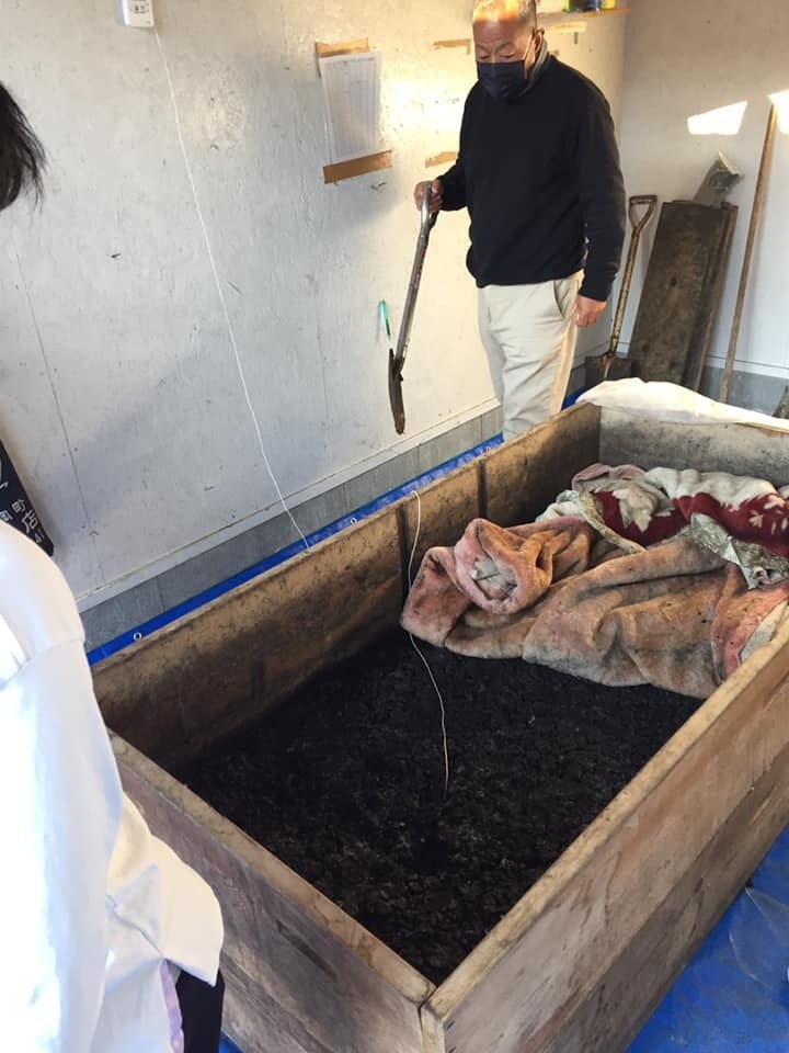 春の種蒔き後、真夏に刈り取られた藍草はすくもとなる葉の部分のみを手作業で丁寧に選り分け、冬の間約100日間、毎日天地を返しながら高温で発酵させることで、藍染の染料となる「すくも」が完成します。佐野市で生産されたすくもを「佐野藍」と呼んでいます。