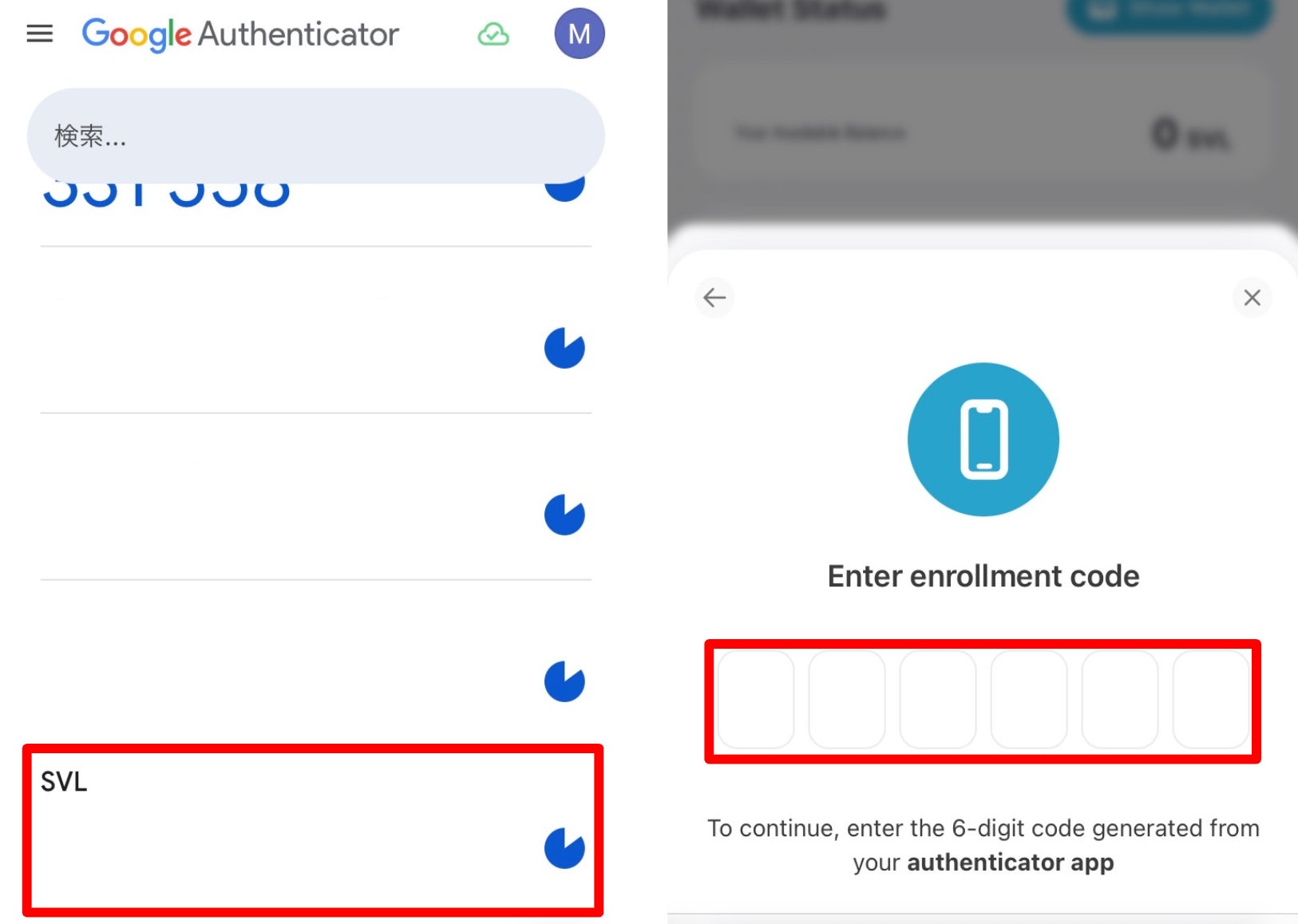 5 二段階認証の設定が完了。Slash Vision Portalに戻り、6桁の値を入力してウォレットにログイン。