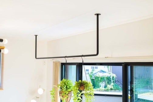 雨や花粉の多い日に室内干しができるよう、ハンギングレールを洗面所とアトリエに設置しました。