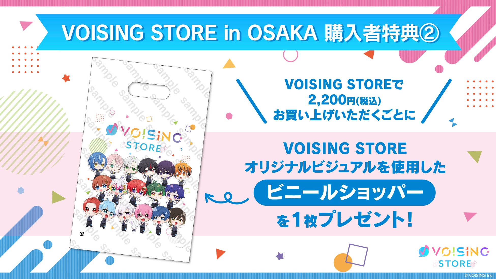 「VOISING STORE in OSAKA」で合計2,200円(税込)お買い上げいただくごとに、「VOISING STORE」オリジナルビジュアルを使用したビニールショッパーを1枚プレゼント!