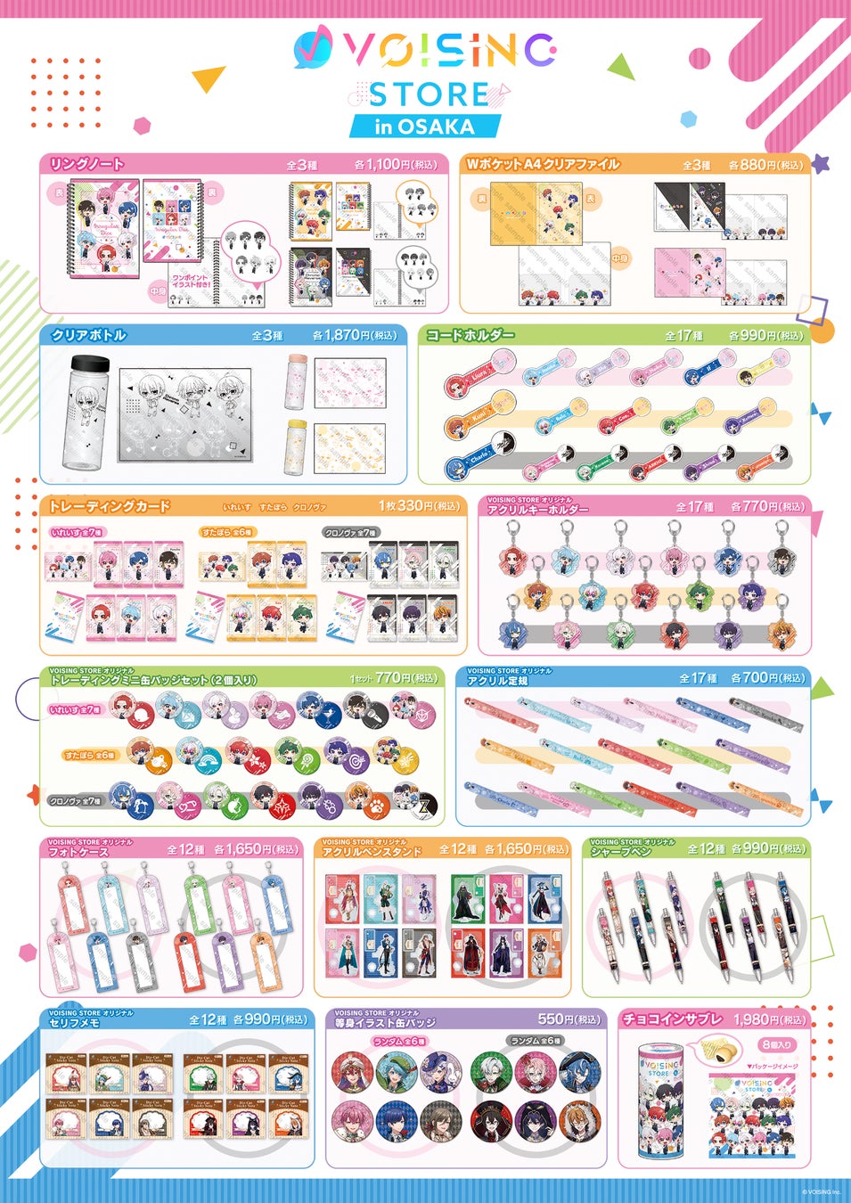 今回の大阪店は、渋谷の「MAGNET by SHIBUYA109」の3階にある「VOISING STORE」と同じラインナップのグッズを取り扱っています。ファン必見のアイテムが揃っており、今まで渋谷でしか手に入らなかったグッズを一度に見ることができる貴重な機会です。店舗でのお買い物はもちろん、店舗内の特別な展示や体験を楽しみながら、好きなグッズを手に入れることができます。