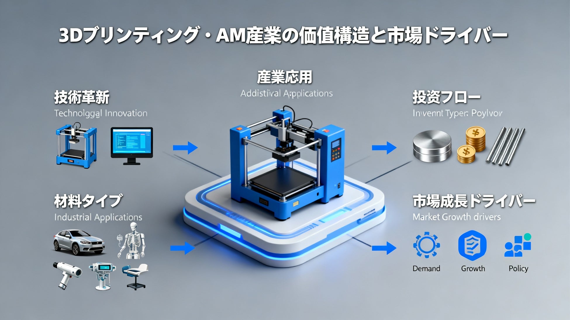 産業用途の拡大は従来の製造業領域を大きく超えている。金属・合金を用いた航空宇宙産業、自動車産業、医療機器産業から始まり、セラミックの高温応用や光学応用、複合材による軽量構造、建設分野向けのコンクリート3Dプリント、そして先端医療、再生医療、遺伝子工学といった多様な領域まで、実に45を超えるセクターで急速に用途が拡大している。