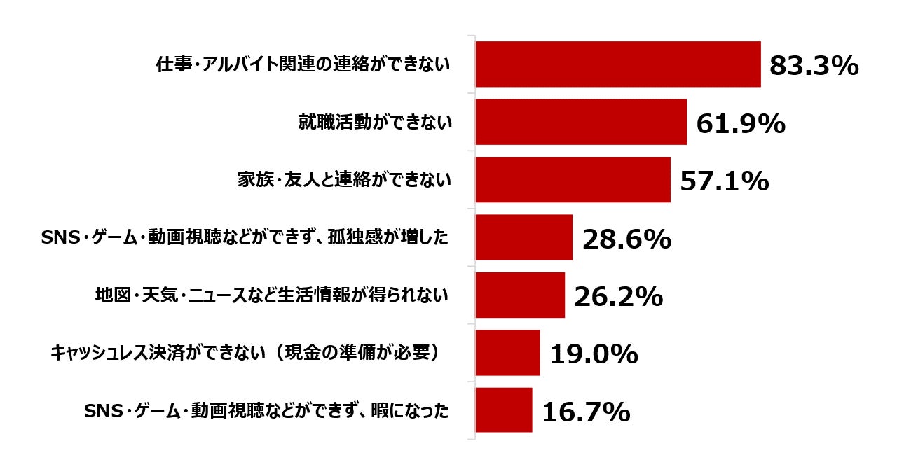 自由回答でも「単発バイトに応募したくても電話番号がないと求人さえも見られなくてお金に困り果てた。(22歳、女性)」「今の時代。スマホがないとなにとできなかったことを実感した(24歳、男性)」などの声が寄せられています。