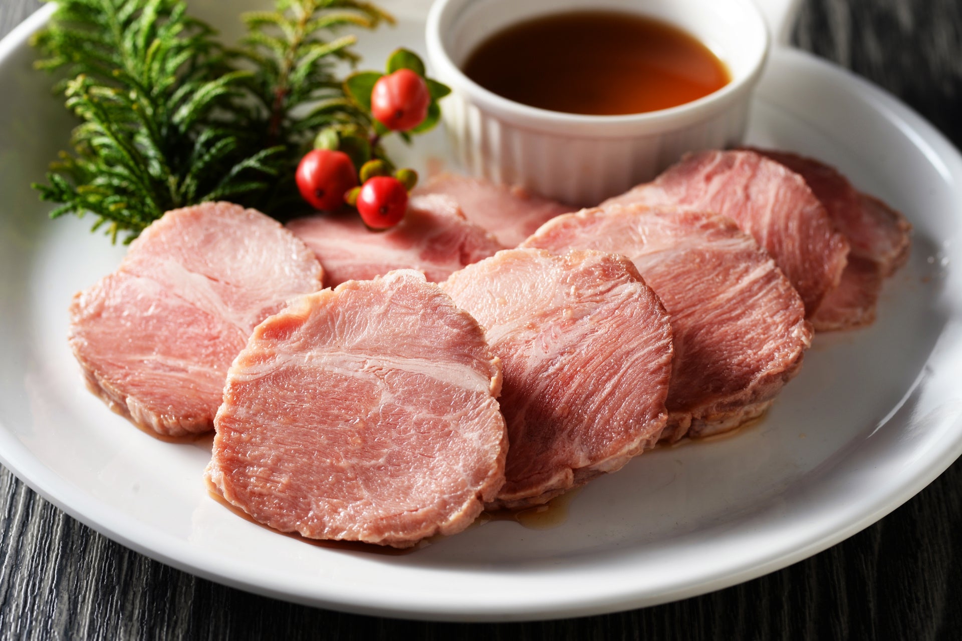 北海道産の豚肩肉に塩をすり込み、ひとつひとつ丹念に表面を手焼きしました。低温でじっくりと加熱することで柔らかい仕上がりとなります。そのまましっとりとした脂と豚肉本来の旨みをお楽しみいただけます。
