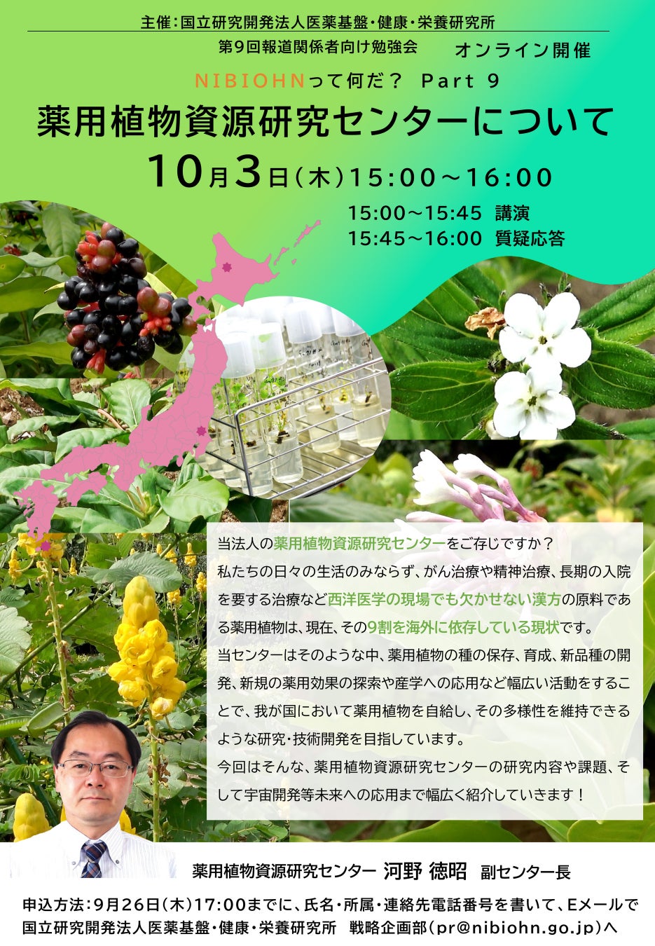 第9回報道関係者向け勉強会「NIBIOHNって何だ? Part9」『薬用植物資源研究センターについて』