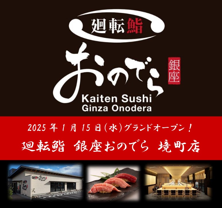 株式会社ONODERAフードサービス(代表取締役社長:小野寺 勇司 所在地:東京都千代田区)が運営する「銀座おのでら」は、茨城県境町(町長:橋本 正裕)と連携し、2025年1月15日(水)、初の行政との連携店舗「廻転鮨 銀座おのでら 境町店」をグランドオープンすることとなりましたのでお知らせいたします。
