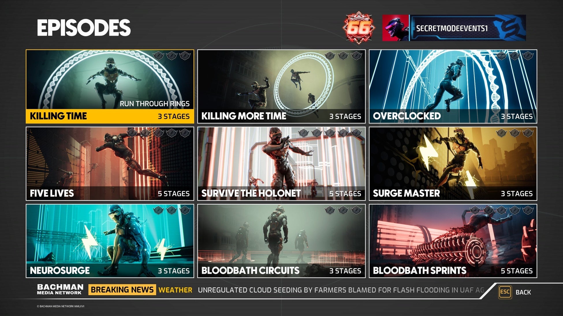 例えば、頭部爆発を避けるために、15秒という限られた時間の中でゲートを通過してタイマーの残り時間を増やしていくレースの「Killing Time」や、クローンの数が厳しく制限され、1位でなければ失格となる「Five Lives」などのエピソードをプレイすることができます。また、よりハードコアな体験を求めるプレイヤーには、「Bloodbath Circuits」や「Bloodbath Sprints」が用意されています。難易度が向上した、危険あふれるマップ上で、ほぼすべての参加者が攻撃してくる中、1位にならなければ先に進めないモードとなっています。