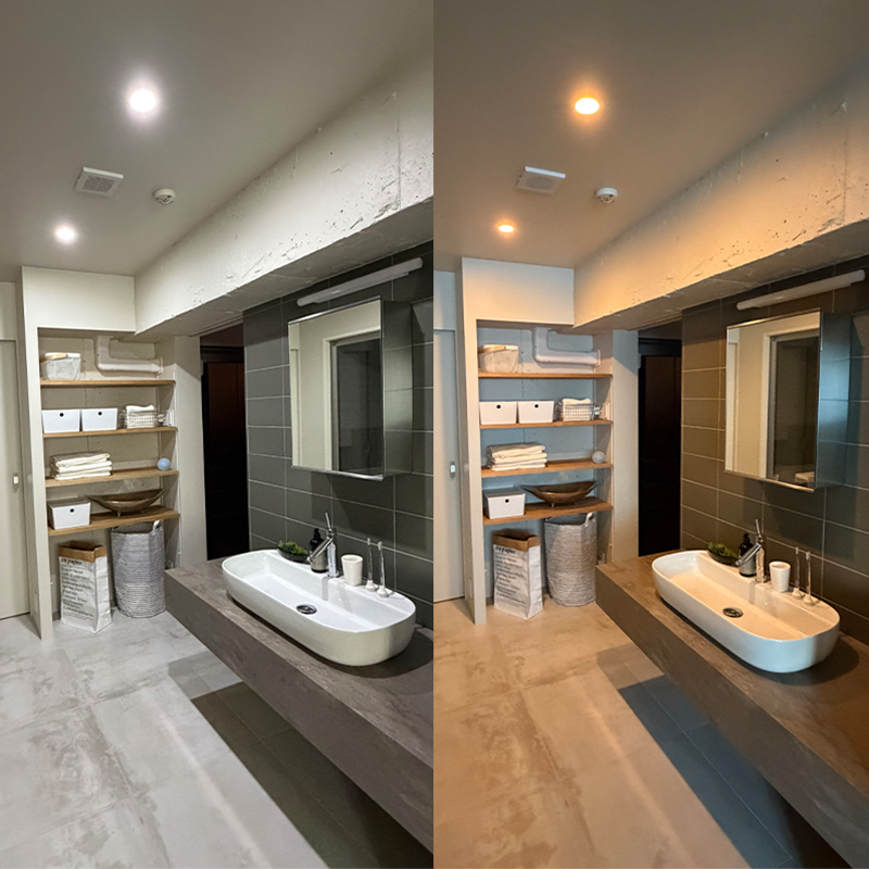 特に夜間のトイレや洗面所では“夜間照明”の控えめな明かりにすることで、再び入眠する際の邪魔をしません。