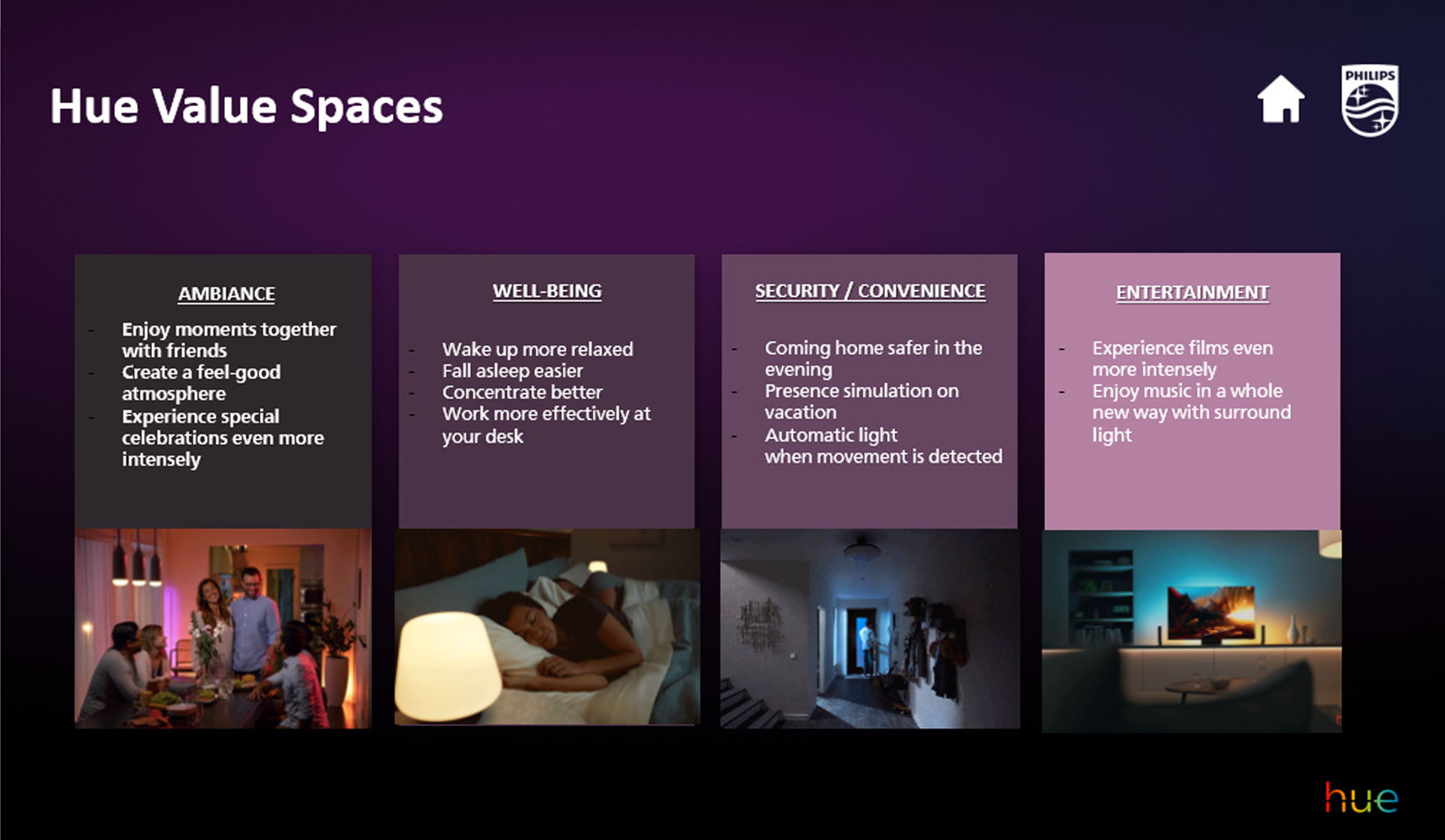 Philips Hueは以下4つの分野で価値を提供します。