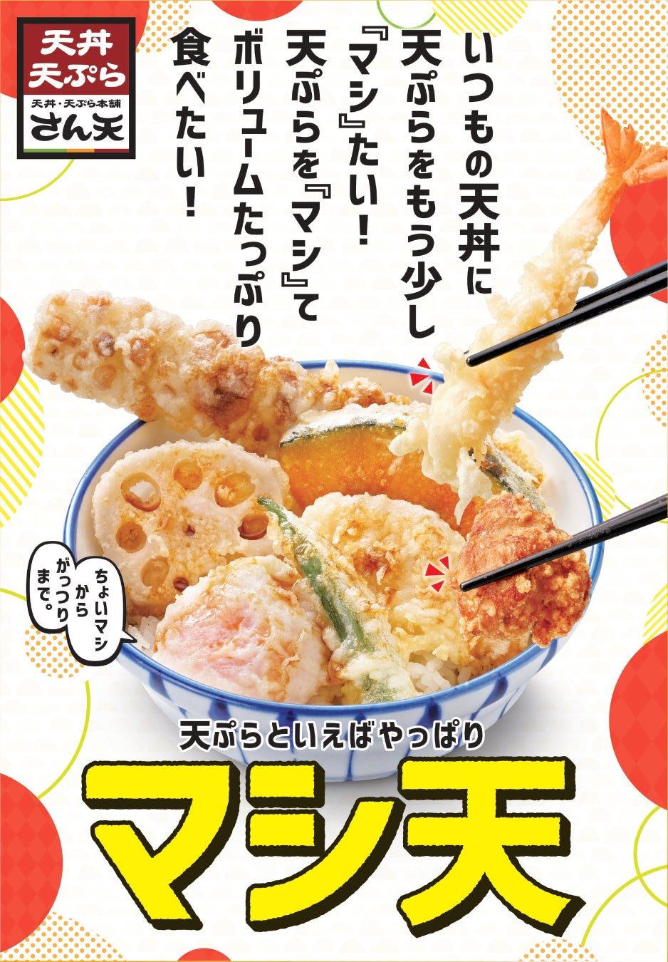 海老天をもっと食べたい方のために、「海老マシマシ」「海老マシマシマシ」がマシ天に仲間入りします。