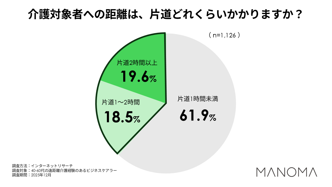 今回の本調査は、こちらの質問に「1時間以上かかる」と回答した、遠距離介護者の方を対象としています。