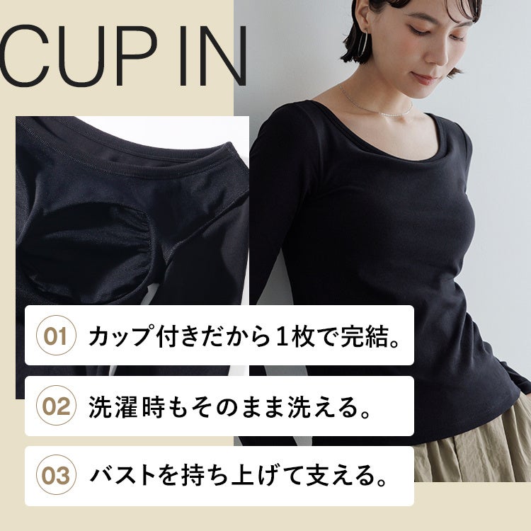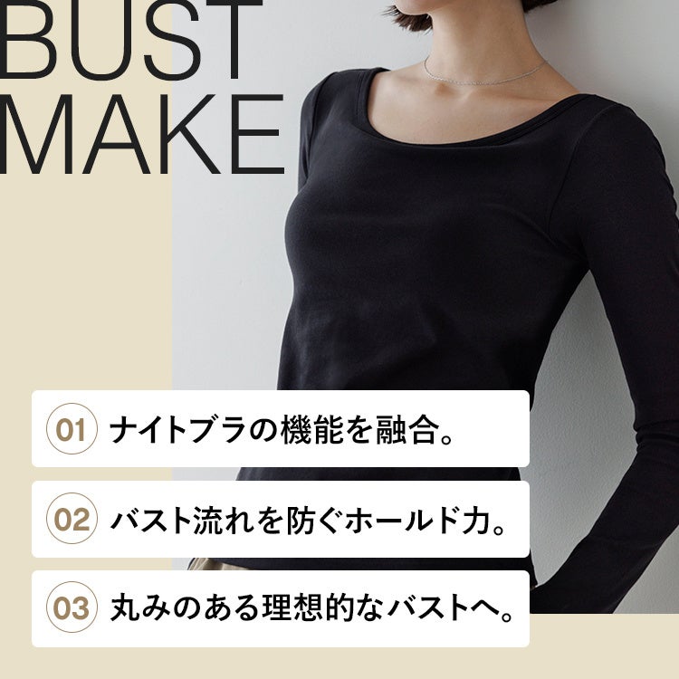 今回発売する『BAMBI WATER カップイン ボートネック-T ロング』は、ナイトブラの補正構造とブラトップの快適さを融合した、まさに「1日中美しく保てる」ブラトップです。特殊な生地で横流れを防ぎつつ、特殊加工の厚みのあるパッドがバストを下からしっかり支えることで、理想のラインをキープ。1日中ホールド力を維持し、外出時や仕事中もナイトブラの効果が得られます。デザインにもこだわり、襟ぐりがすっきりとしたボートネックは、カジュアルからフォーマルまで幅広くコーディネート可能。