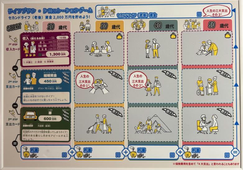 特に目玉であるライフプランに関するシミュレーションゲームは、20代から50代までのライフイベントとそれに伴う支出額について、遊びながら学ぶことができます。