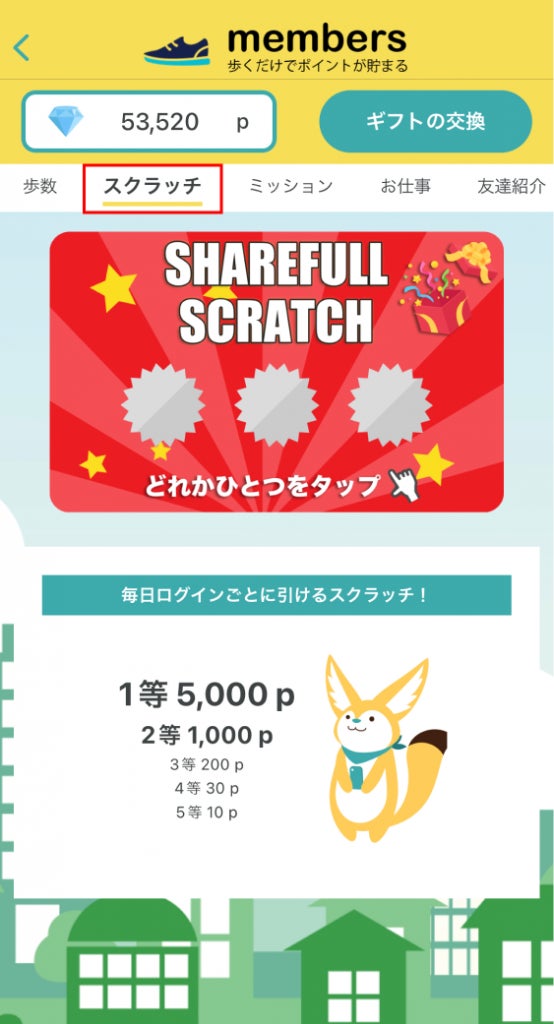 「シェアフルmembers」のスクラッチでもらえるポイントが通常の5倍に!