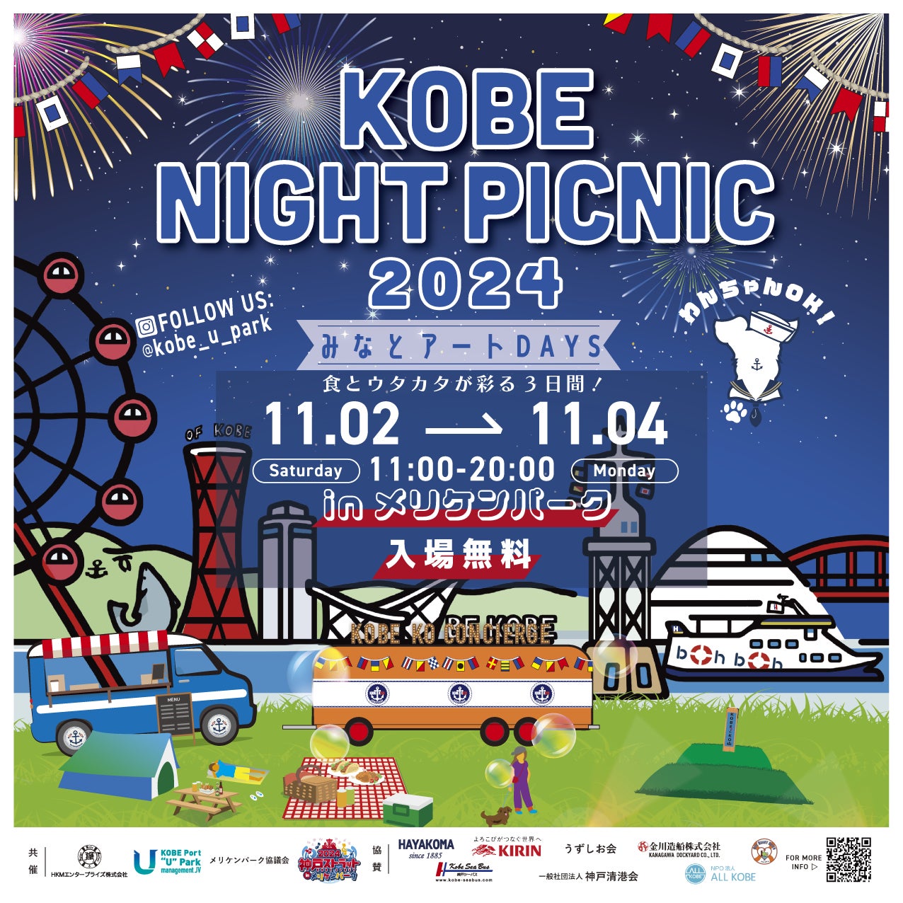 11月2日~4日‟KOBE NIGHT PICNIC 2024 みなとアートDAYS 食とウタカタが彩る3日間!”開催!★入場無料・ワンちゃんOK★11月の3連休はメリケンパークへ