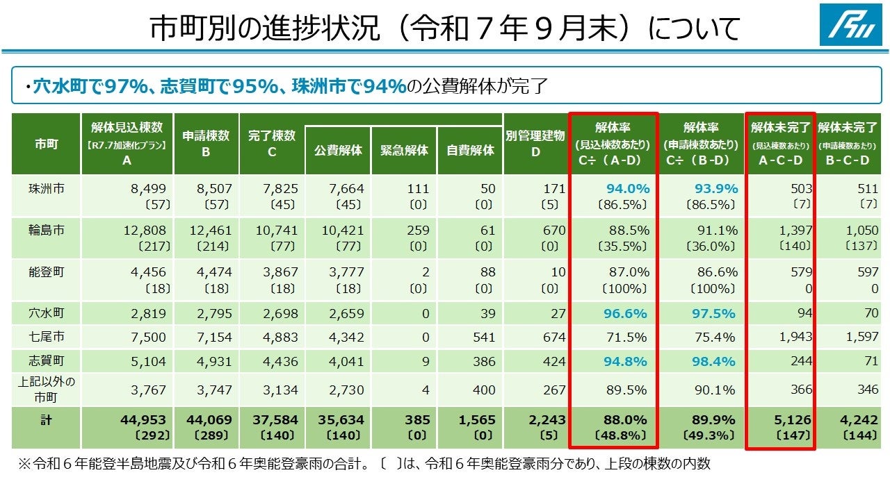 能登半島地震及び奥能登豪雨における公費解体の状況について(令和7年9月末時点)