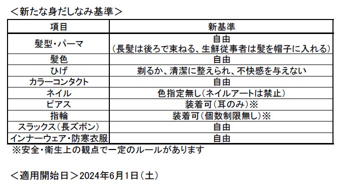 マルエツは、従業員一人ひとりが個性を発揮し、自分らしくいきいきと働ける職場環境づくりの一環として、6月1日(土)から、勤務時における従業員の身だしなみ基準を大幅に見直しいたします。