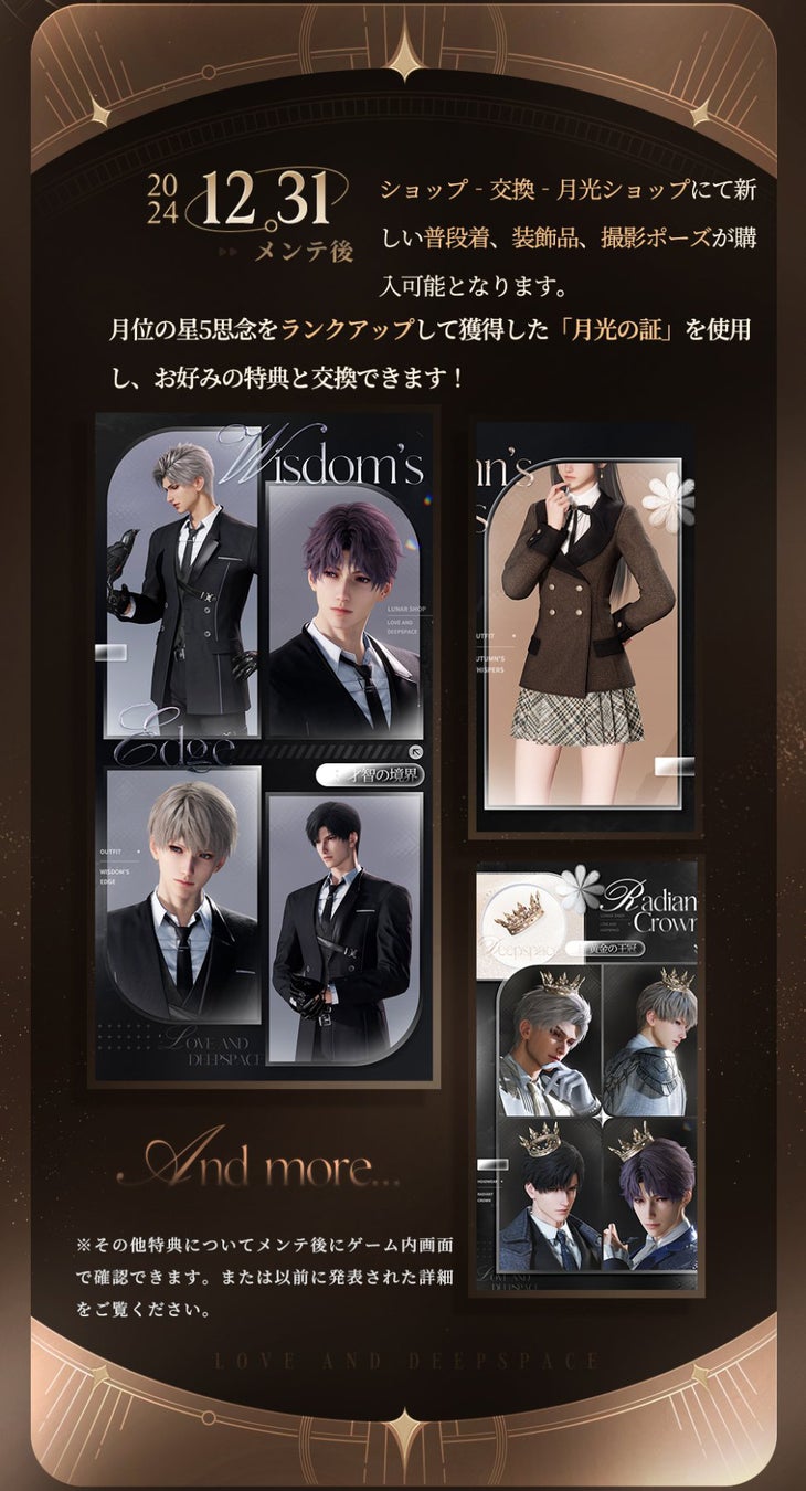 イベント説明:2024年12月31日メンテナンス後、月光ショップで新商品が登場します。「私」とカレの新しい普段着、親密な撮影ポーズ、面白い交流可能な髪飾り、様々な装飾品が購入可能となります。