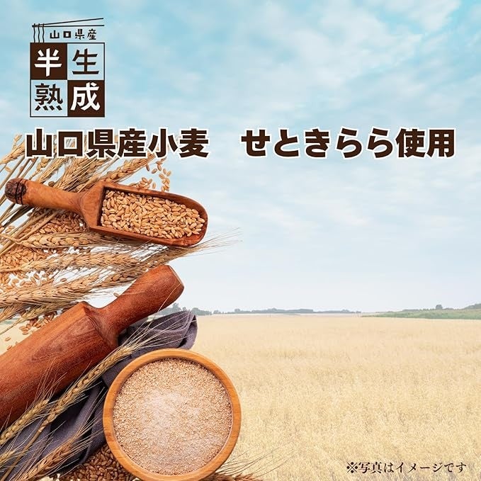 「せときらら」は、山口県で栽培された原料を使用しており、優れた製パン適性と製麺適性を持つ、新品種の小麦です。