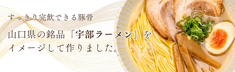 山口県の銘品「宇部ラーメン」をイメージしたこの商品は、「お鍋一つで簡単調理!」をテーマに開発され、原材料に山口県産"せときらら"小麦を使用して半生熟成に仕上げた麺と、濃厚なとんこつスープを合わせたとんこつラーメンとなっております。