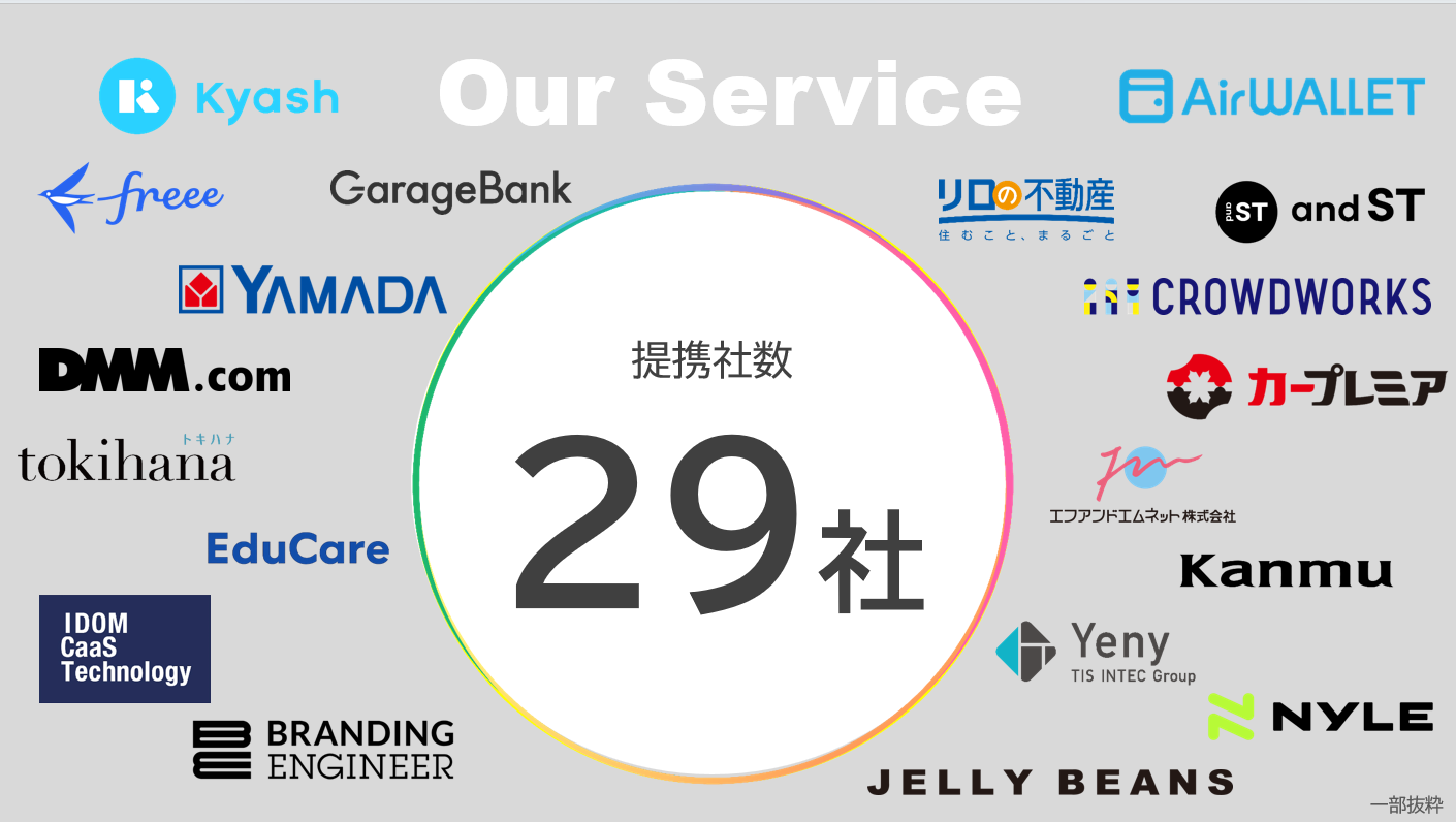 また、事業会社にとっては、API接続だけで金融事業に参入することができ、レベニューシェアにより新たな収益源を得ることも可能になります。金融業務は全てGeNiEが担うため、特別なライセンスや金融事業に関する知見は必要ありません。