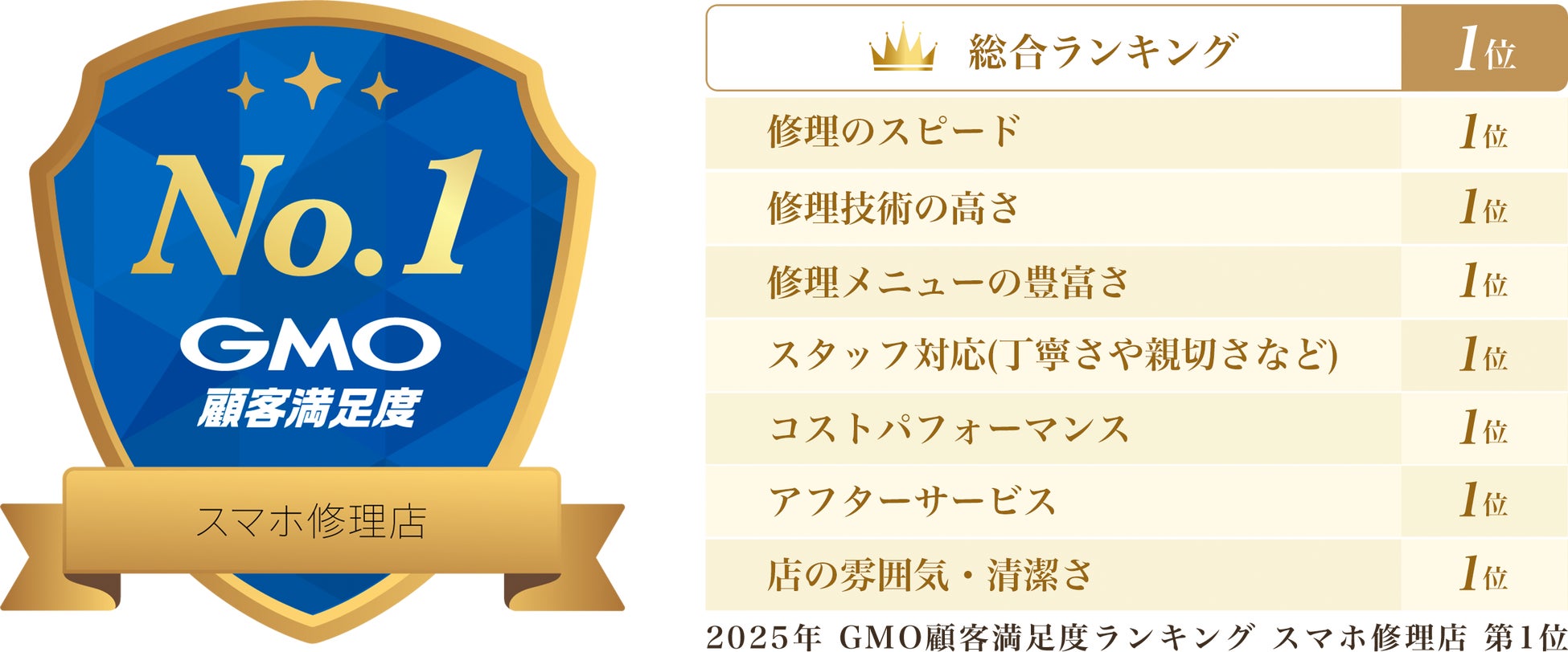 iCracked Japan株式会社(本社:東京都渋谷区、CEO:福島 知彦)が全国に展開するスマートフォン修理店「iCracked Store」が、GMOリサーチ&AI株式会社が2025年7~8月に実施したスマホ修理店の顧客満足度調査において、総合ランキングに加え、7つの評価項目別ランキングの全てにおいて第1位を獲得しました。