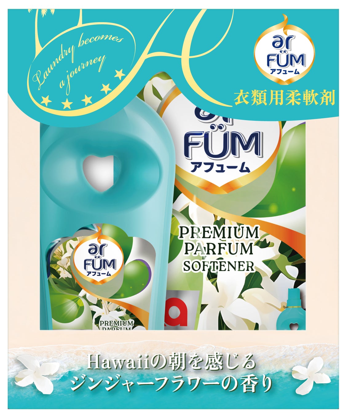 「アフューム プレミアム柔軟剤 ジンジャーフラワー」は、まるでハワイのリゾート地にいるような、華やかで開放感のあるジンジャーフラワーの香りが特長の柔軟剤です。