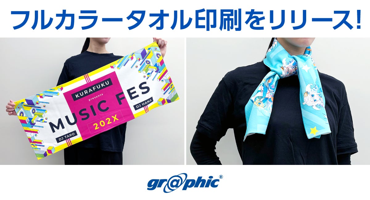 記念品・推し活・ライブやスポーツ観戦などの応援グッズとして人気。ネット印刷のグラフィックが、全面プリント可能な「フルカラータオル印刷」をリリース。