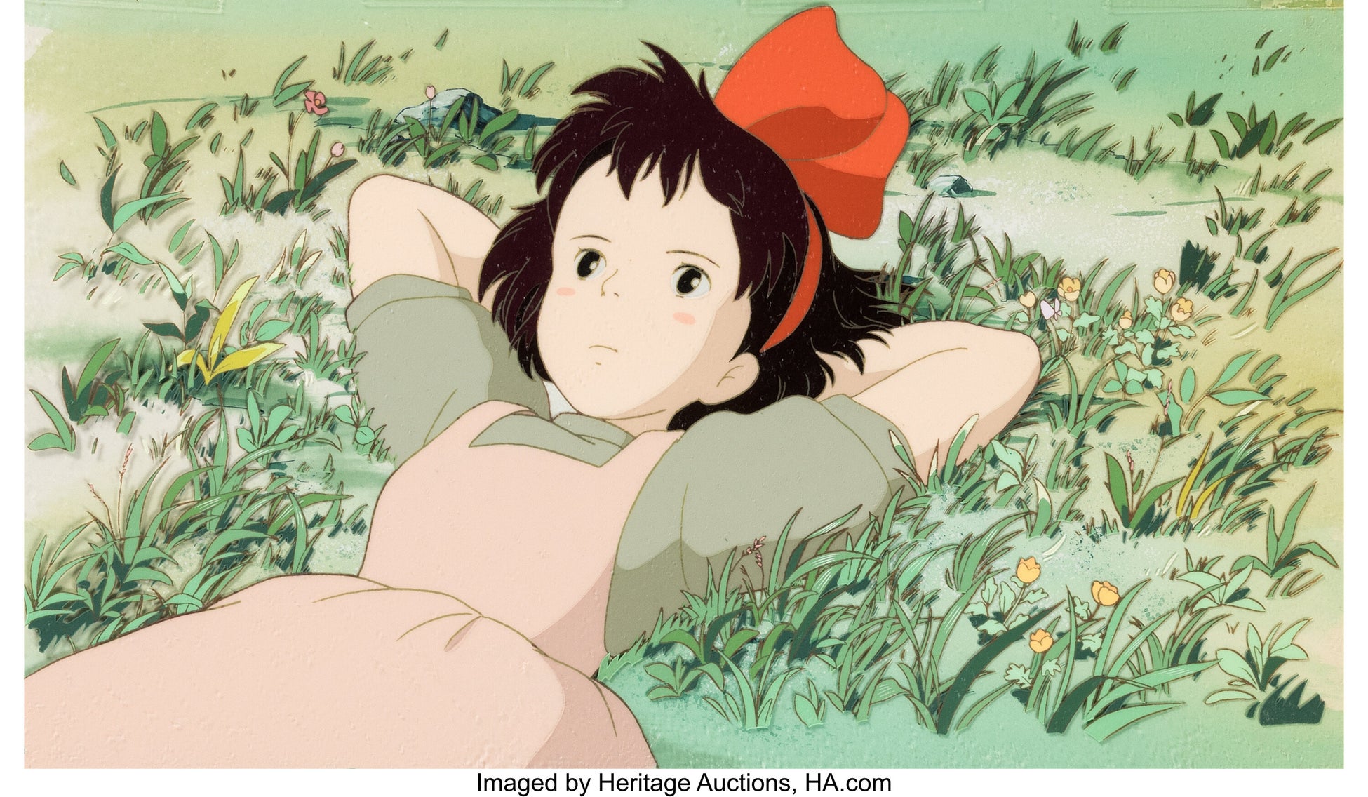 - 『魔女の宅急便』 草むらに寝転ぶキキ 制作用セル(スタジオジブリ、1989年)
