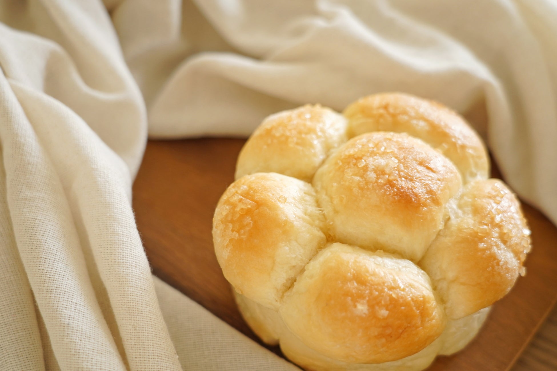 少し甘めの生地に、砂糖とバターをトッピングした、やさしい口あたりのふんわりパン。そのままでも十分にやわらかく美味しくお召し上がりいただけますが、オーブントースターで1分ほど温めると、さらにふっくら・しっとりとした食感が楽しめます。