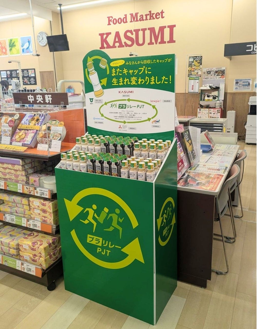 株式会社カスミ(代表取締役社長:折本 文孝、本社:茨城県つくば市)は、茨城県鹿嶋市、リファインバース株式会社、三菱ケミカル株式会社、東洋製罐グループホールディングス株式会社、キユーピー株式会社とともに推進する「プラリレープロジェクト」において、鹿嶋市内で回収したドレッシングキャップ・ペットボトルキャップをケミカルリサイクルで再資源化し、その再生材を用いたキャップを採用したキユーピー製ドレッシング3品を数量限定で販売いたします。
