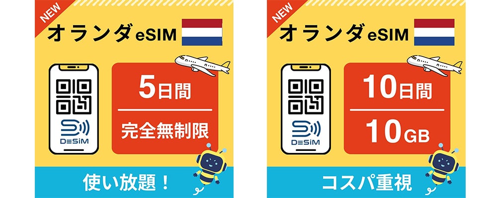 速報JAPAN株式会社(本社: 西東京市、代表: 賀詞)のブランド「DeSiM」は、Amazonにてオランダ旅行に最適なeSIMプランの販売を開始しました。