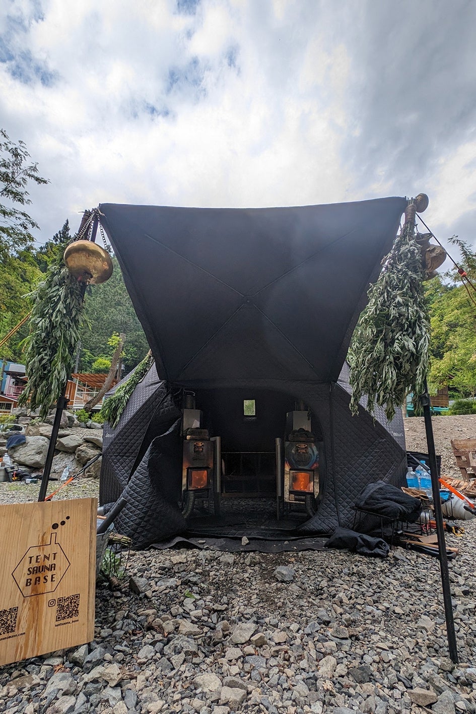 日本一テントサウナイベントをやっているサラリーマン(自称)の「TENTSAUNA BASE」は、SUMMER SONIC 2024のSAUNASONICの出展や50人規模から300人規模の様々なサウナイベントの運営企画をされています。また、 テントサウナは、10人が入れる大型のsotoburoDOME12を使用し、スチームジュネレーターを2台稼働させることで、2種類のスチームをミックスしたハーバルスチームサウナを展開されています。