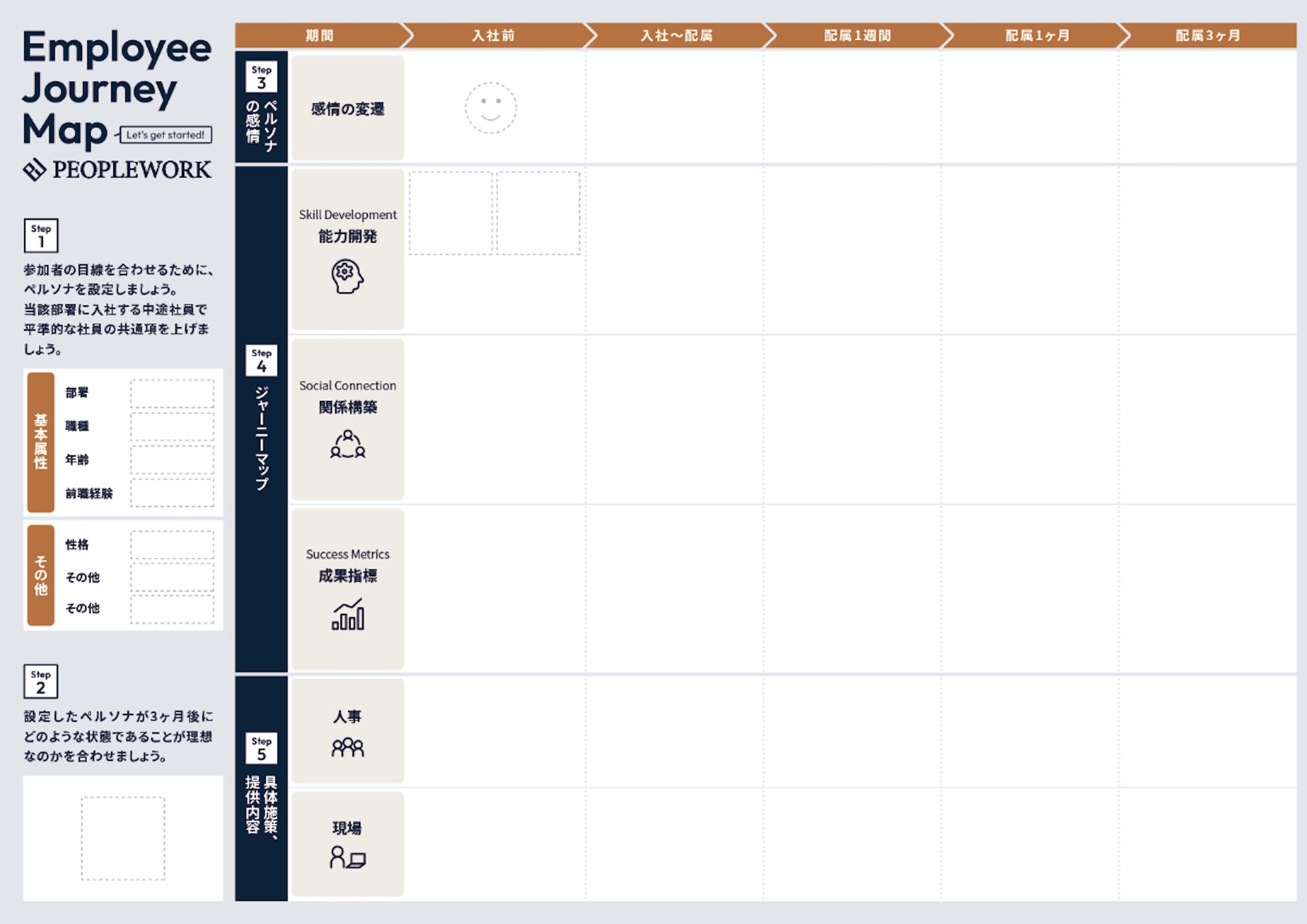 エンプロイーサクセス事業を推進する株式会社PeopleX(本社:東京都渋谷区、 代表取締役CEO:橘 大地、以下:当社)は、「エンプロイージャーニーマップ ツールキット」を提供開始することをお知らせいたします。本ツールキットは、人事・事業部が連携し理想のオンボーディング体験構築を目指す「新入社員ワークショップ」の受講者へ進呈いたします。