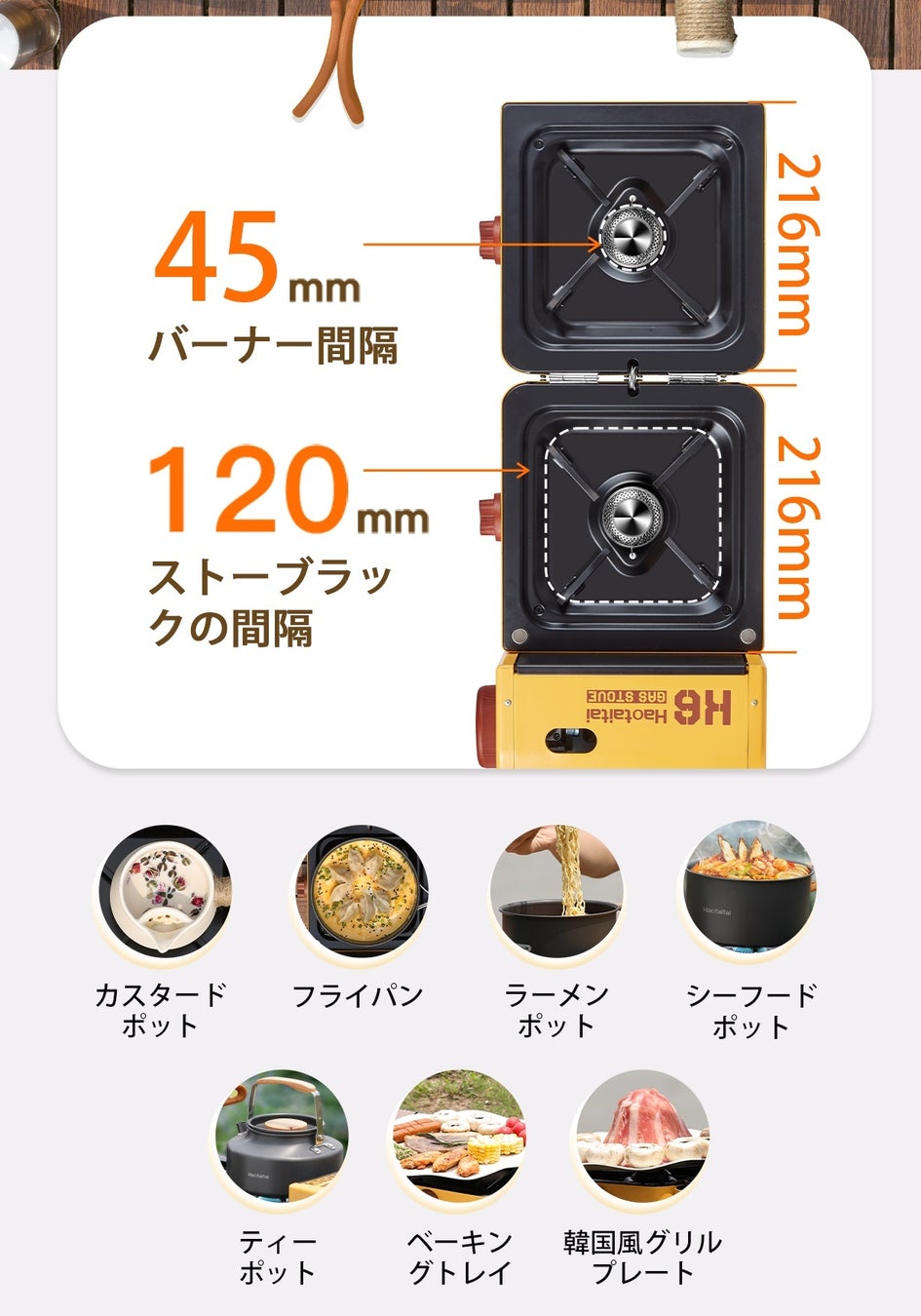 キャンプや料理好きなあなたに朗報!「HTT-K6」は高性能で多様な鍋に対応。折り畳み収納可能で携帯超自在、CB缶とOD缶両方使用可。これでキャンプがもっと楽しく、料理が一段と美味しく、便利になります!