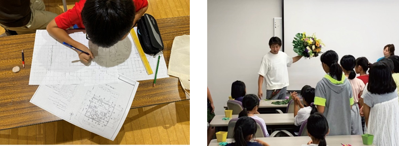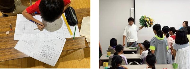 体験は多彩な内容がそろっており、メディアクリエイターと動画撮影・編集をしたり、パティシエとクッキーを作ったりします。建築士からは図面の引き方を学び、フラワーデザイナーからは器に花を生けるアレンジメントを教わります。