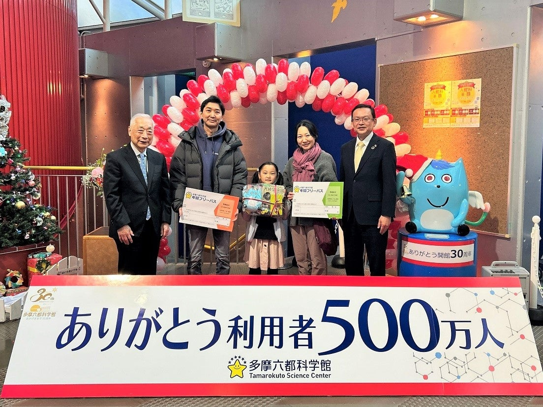 2024年12月21日(土)、 多摩六都科学館(東京都西東京市、館長:髙柳雄一)は1994年3月の開館以来500万人目の利用者をお迎えたことを記念し、式典を執り行いました