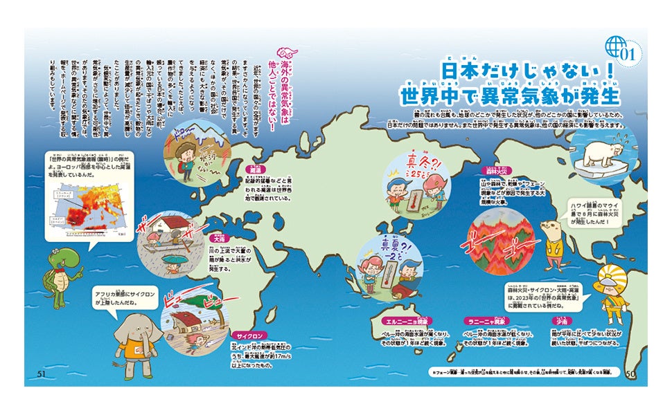 数々の異常気象が発生している中、人の命を守るために発表されている防災気象情報も学ぶことができ、どのタイミングでどのような準備をすべきかなど、家族と自分の身を守るための「防災」行動も学べます。