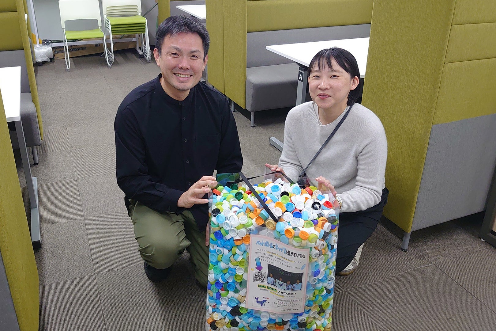 また、「九州探検隊」からは、博多大丸の事務所で回収されたペットボトルキャップをご提供いただきました。この取り組みは、資源循環の推進と環境意識の向上を目的としており、地域と連携した持続可能な社会の実現に向けた一歩となりました。