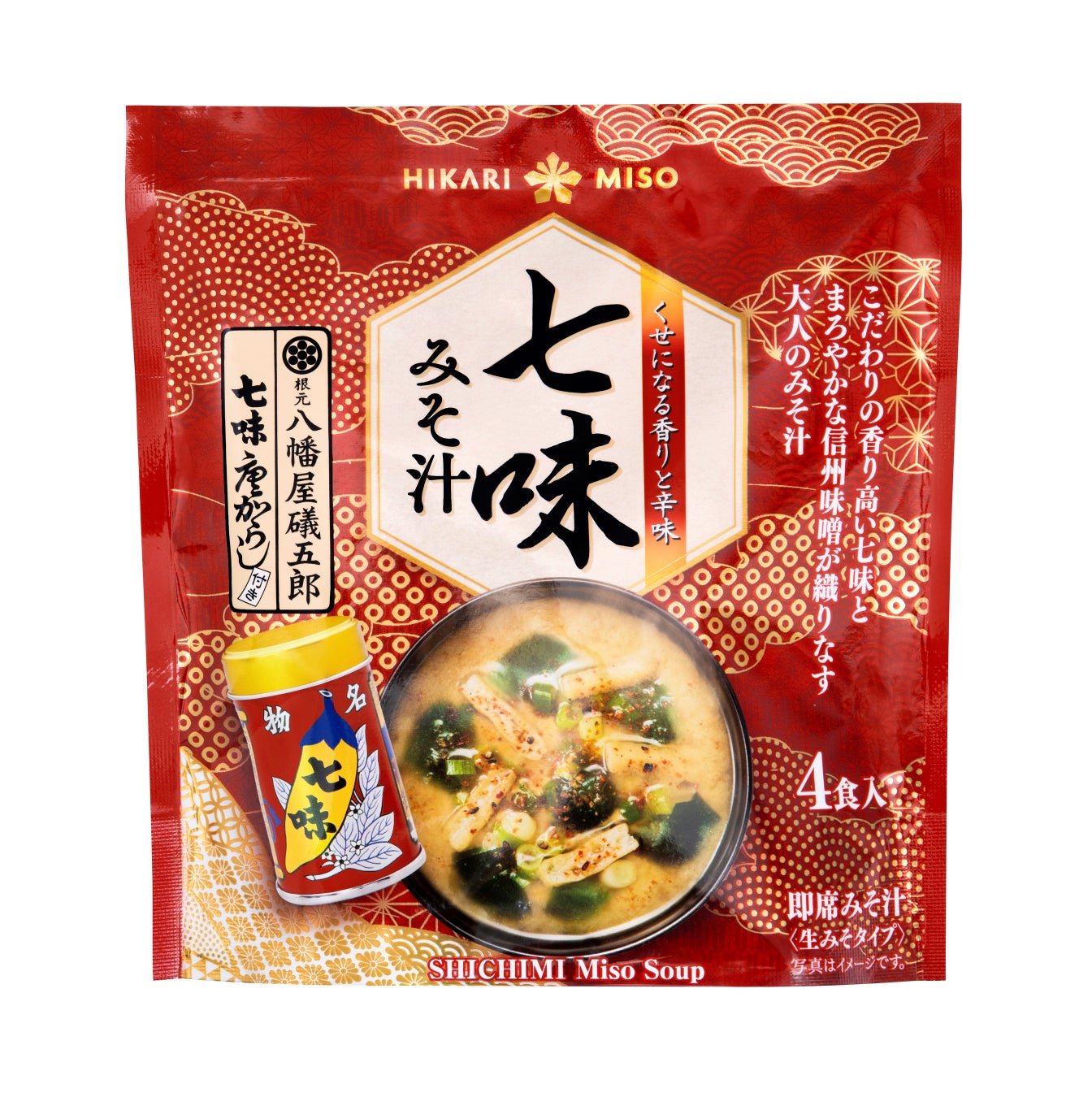 昨今の辛味系フレーバー増加トレンドを受けた、辛さを際立たせた大人向けの「七味みそ汁」です。まろやかですっきりとした味わいの信州味噌に最も相性のよい七味唐辛子を求めた結果、辛味と香りの調和がとれた八幡屋礒五郎とのコラボレーションが実現しました。